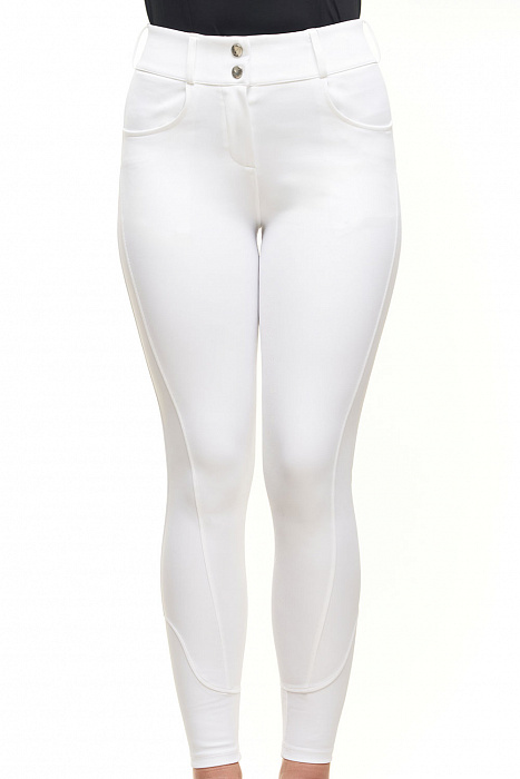 Бриджи имеют широкий пояс с застежкой на две металлические кнопки и молнию, что обеспечивает идеальную талию даже с заправленной водолазкой. Дополнительным плюсом являются удобные вместительные карманы достаточные, чтобы вместить телефон.