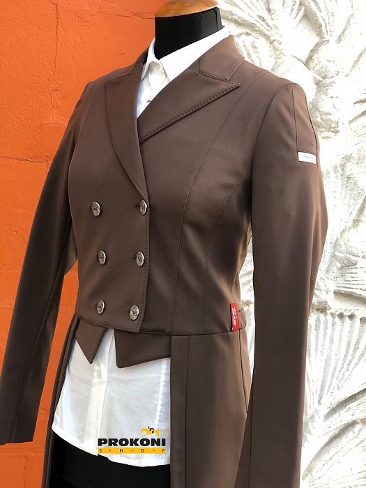 Однослойный классический фрак без страз и других декоративных вставок из умеренно эластичной плотной ткани.