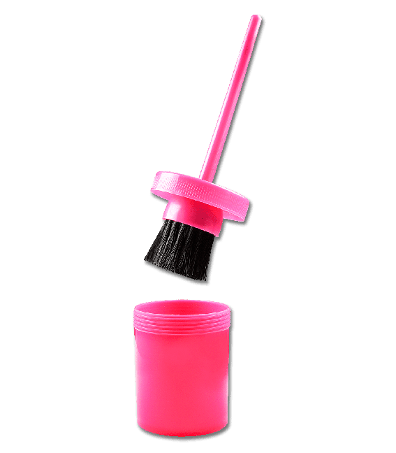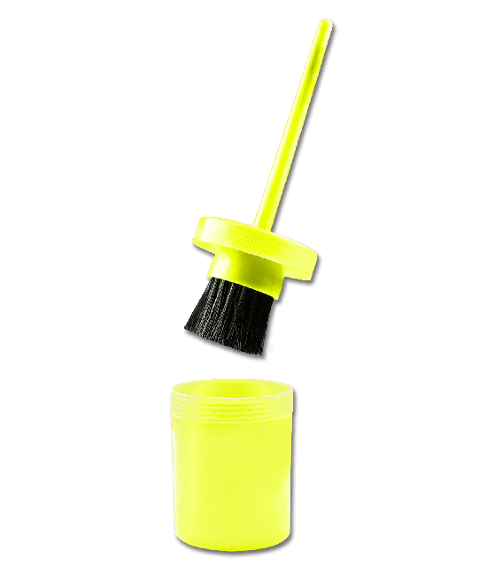 Кисточка для копыт имеет колпачок на резьбе, так что кисточка ничего не испачкает и не соберет на себя мусор находясь в сумке.