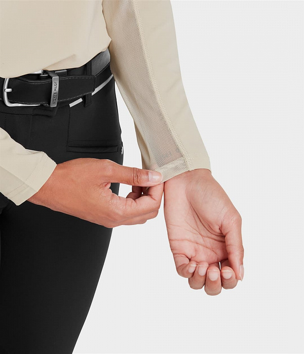 Поло Sunrise, оснащенно технологией UV-Block, которая обеспечивает эффективную защиту от ультрафиолета (SPF 50+).Чрезвычайно легкая ткань тянется в обоих направлениях, обеспечивая полную свободу движений. В отличие от других моделей поло и водолазок, у этой водолазки-поло свободный крой от груди и ниже и достаточная длина, что позволяет носить ее заправленной в бриджи, при этом она будет не в обтяг в районе торса и создавать непринужденный силуэт и воздушность.