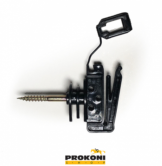 Крепеж для электропастуха включает в себя набор из 10 держателей из пластика, не проводящего ток. В каждом держателе уже вкручен шуруп. Это готовая система к которой требуется только основа-колышки.