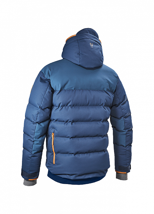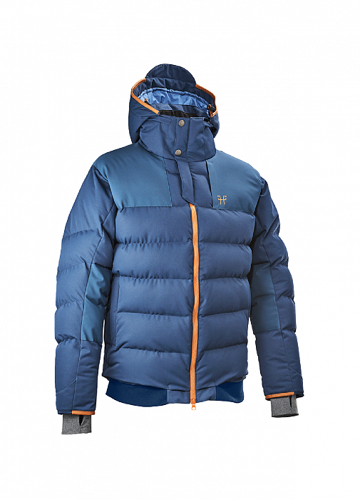 Куртка обладает всеми горнолыжными качествами, но создана специально для конников. В куртке очень необычный верх: высокий воротник-стойка с клапаном на магните и кнопке закрывает вашу шею целиком, подходит под носку со шлемом самой холодной зимой без множества шарфов и балаклав, скрытая молния, в которой прячется капюшон изящно вписана в общий дизайн куртки. Куртка приталенная гладкая снаружи и стеганная изнутри горизонтально для беспрепятственных движений корпусом т.к. куртка сгибается и не топорщится. Рукав удлиненный для положения всадника руками впереди корпуса. Для регулировки комфортной посадки застежка куртки имеет молнию снизу, никаких бол