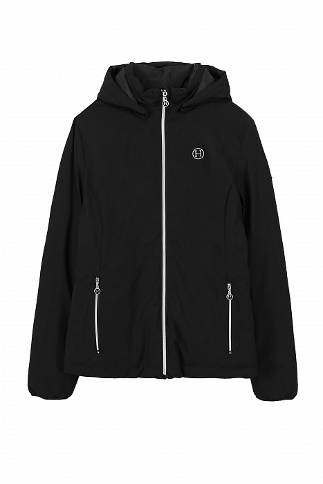 Молния двойная, можно расстегнуть снизу для комфортной посадки в седло. Карманы на молнии с обеих сторон. Капюшон съемный.