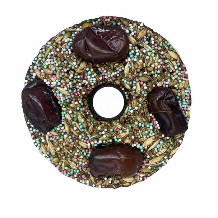 Лизунец-ликит из натуральных продуктов с зерном и сухофруктами может крепиться в стандартный держатель от лизунца. Продается в упаковке-ведерке....