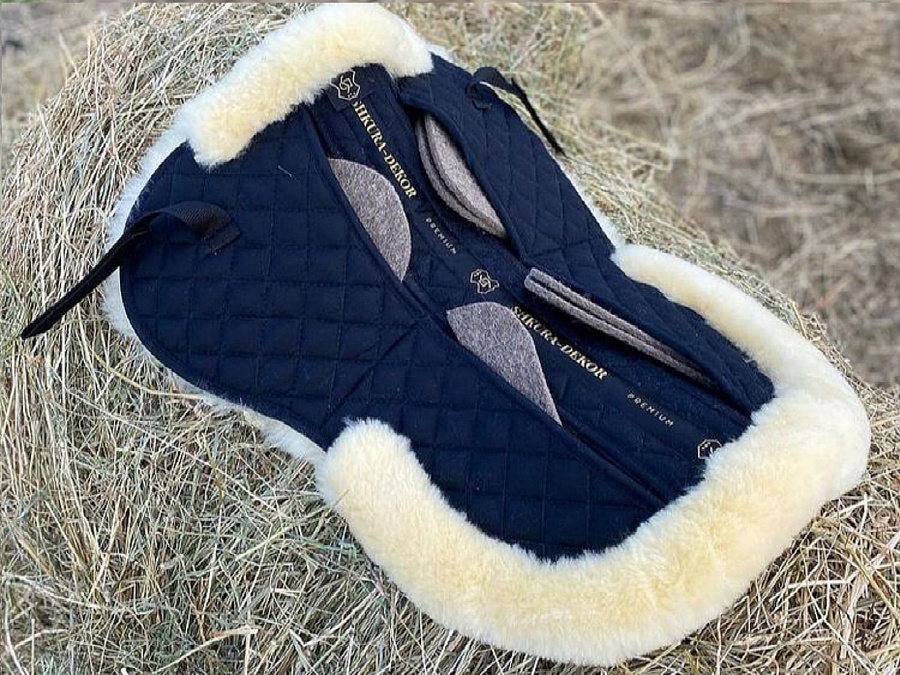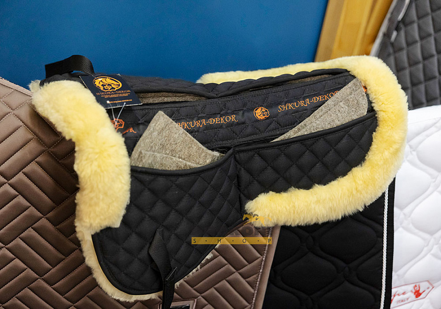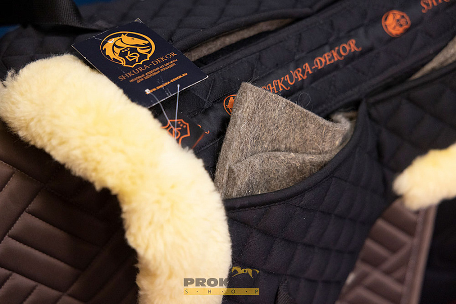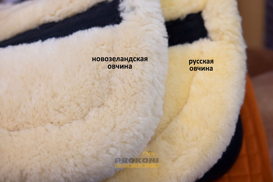 Пушистая натуральная меховушка на основе из натурального мелкостёганного хлопка. Анатомически правильно ложится на лошадь. Русская овчина имеет иной ворс, чем Новозеландская. Мех более короткий и бол...