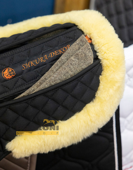 В меховушке 4 кармана (по 2 с каждой стороны) в которые можно вложить войлочный корректор для компенсации ассиметрии лошади или если лошадь растет и перестроена.