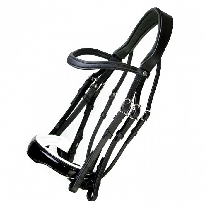 Оголовье мундштучное с лаковым анатомическим капсюлем и белой подложкой