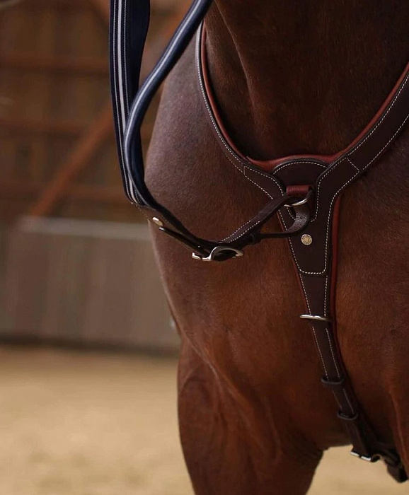 Подперсье Antares с креплениями боковых ремней за приструги под крылом. Такое крепление не портит кожу седла и надежнее фиксирует седло на лошади. Не подходит для монокрыла. Только для двойного крыла.