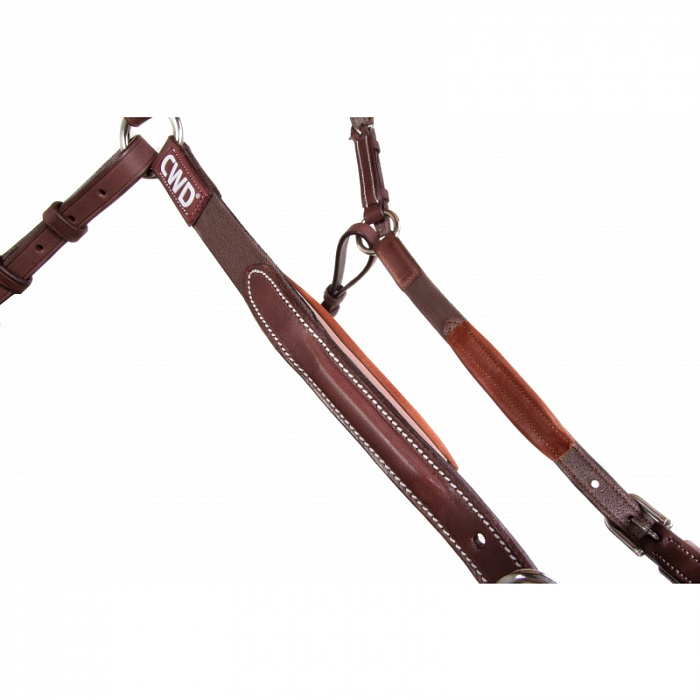 Плотная многослойная подпруга Flexmotion из кожи растительного дубления от Французского бренда CWD с фартуком с магнитной защитой карабина для подперсья. С двух сторон резинки. Подпруга анатомическая ...