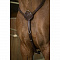 Подперсье из буйволиной кожи с подложками из коровьей кожи, в комплекте с мартингалом на карабинах. Черная строчка для черной кожи и кремовая строчка для коичневой кожи (гавана). Пряжки из нержавеющей стали. Встроенные короткие резинки на плечевой части для большего комфорта