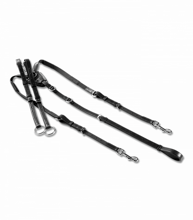 Кожаное подперсье со съемным мартингалом имеет кольца на подперсье чтобы закрепить мартингал на нужной высоте. Сами мартингальные ремни имеют регулировку по длине. Для прыжков мы рекомендуем пристегивать мартингал за самое высокое кольцо, чтобы лошадь в прыжке не запуталась ногами. Для плоской работы (т.е. без прыжков) подойдет любое положение.