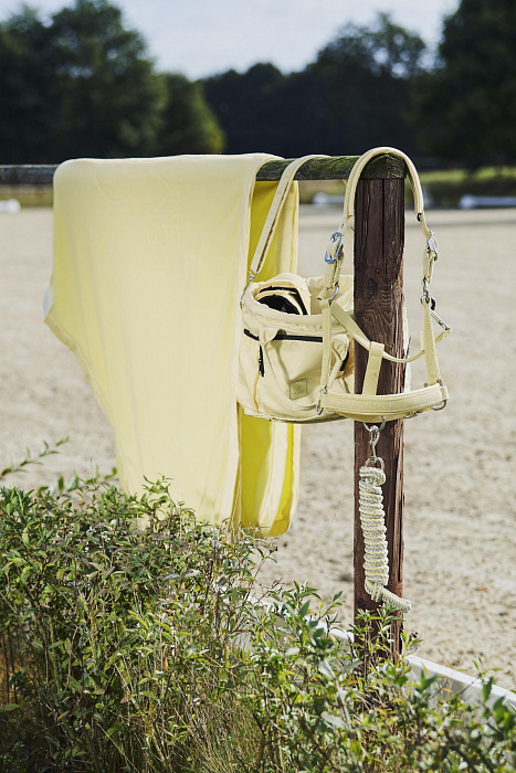 Двойная застежка на груди с фиксацией на липучке и съемные скрытые подбрюшные ремни сделают эту попону хорошей как для того чтобы накрыть лошадь с седлом в манеже или бочке, так и оставить ее в попоне подсохнуть прямо в деннике.