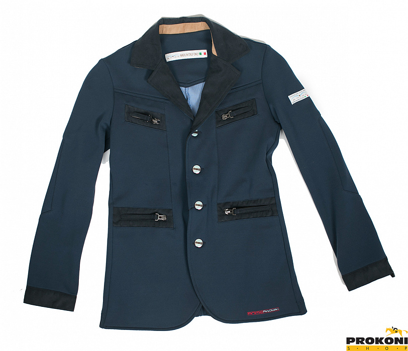 На рукаве скромный логотип. Маленькая копия взрослого редингота Animo.