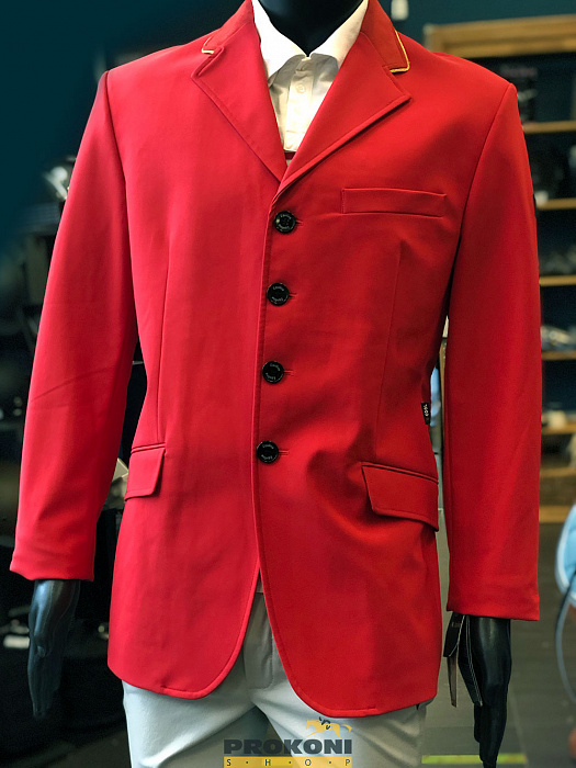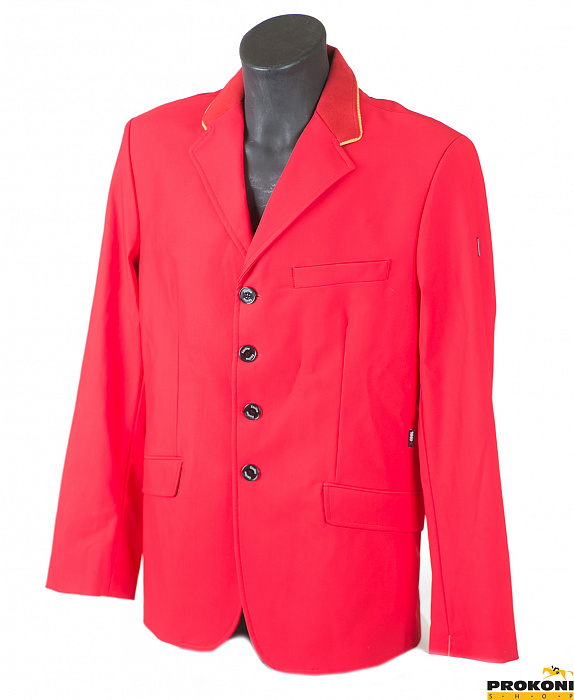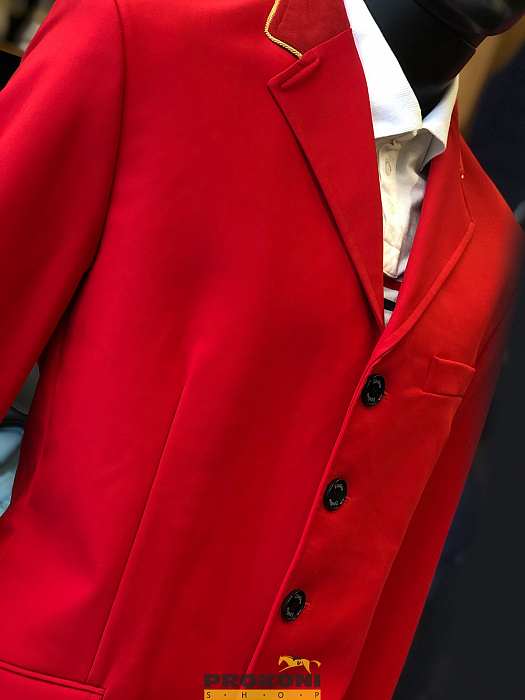 Редингот в классическом для конкура цвете: ярко-красный. Не смотря на классический вид Equiline использует современные ткани при создании этого спортивного редингота. Эластияная ткань не стестяет движений, не дает всаднику эффект парника выводя лишнее тепло наружу.