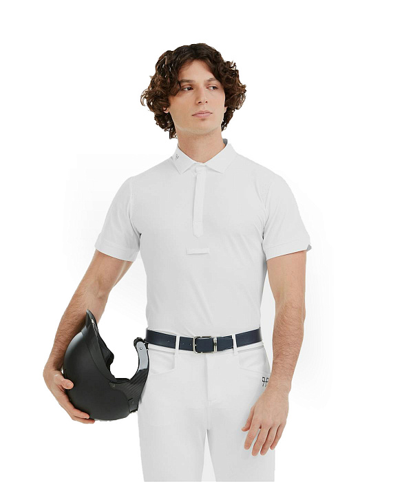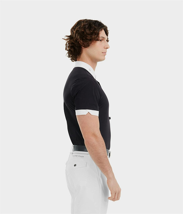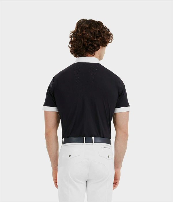 Легкая футболка-поло как для занятий конным спортом, так и для повседневного ношения. Имеет стильный перфорированные вставки в области лопаток. Спереди на пуговицах....