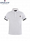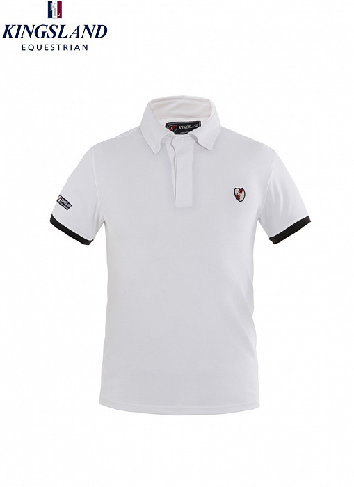 Рубашка выполнена в стиле поло, имеет контрасные вставки на рукавах и небольшой логотип-герб на груди.