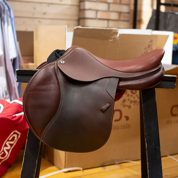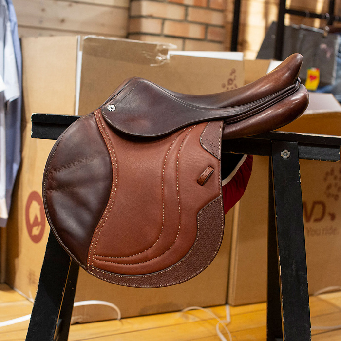 Плотная многослойная подпруга Flexmotion из кожи растительного дубления от Французского бренда CWD с фартуком с магнитной защитой карабина для подперсья. С двух сторон резинки. Подпруга анатомическая ...