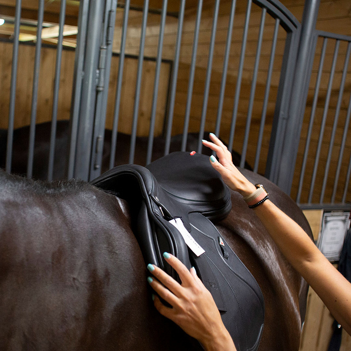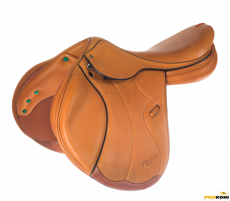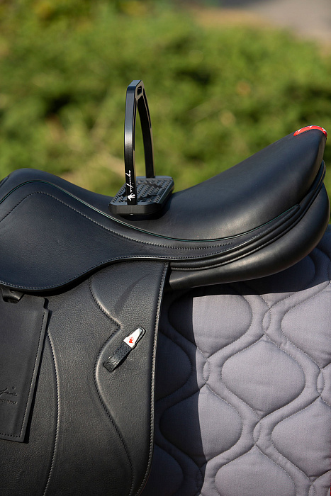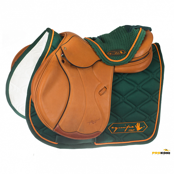 Это конкурное седло итальянского производителя Equipe создано на основе синтетического ленчика, благодаря которому существенно снижен вес всего седла. Подушки вдоль позвоночного канала наполнены пеной для равномерного распределения веса всадника. Производитель уделяет особое внимание и ширине канала. Коленные упоры сделаны с учетом анатомии так, что вам не придется «разнашивать» седло для комфортной посадки. В лучших Итальянских традициях седло обтянуто телячьей кожей высочайшего качества.