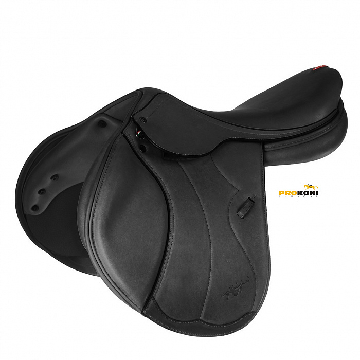 Это конкурное седло итальянского производителя Equipe создано на основе пластикового ленчика, благодаря которому не только существенно снижен вес всего седла, но и создан близкий контакт всадника с лошадью за счет меньшей толщины седла. Подушки вдоль позвоночного канала наполнены латексной пеной для равномерного распределения веса всадника. Производитель уделяет особое внимание и ширине канала. Коленные упоры сделаны с учетом анатомии так, что вам не придется «разнашивать» седло для комфортной посадки. В лучших Итальянских традициях седло обтянуто телячьей кожей высочайшего качества.