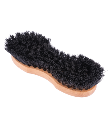 Пластиковые щетинки разного размера позволяют легко чистить копыта лошади, а щетку легко отряхнуть. Деревянную ручку с "талией" удобно держать в руках.