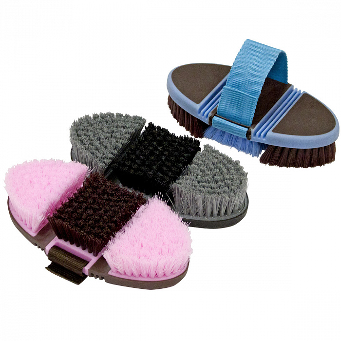 Щетка мягкая с искусственной щетиной на гибкой основе. Щетки с мягкой щетиной удобно использовать как на морде, где особо чувствительные участки, так и на ногах, и, конечно, можно чистить весь корпус лошади. Благодаря гибкости щетка вычищает каждую ямку на теле лошади.