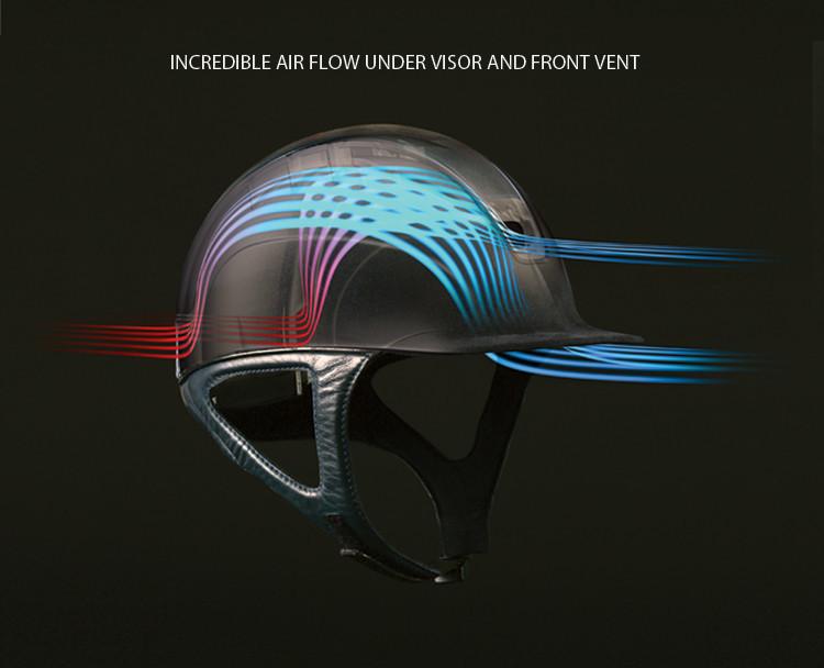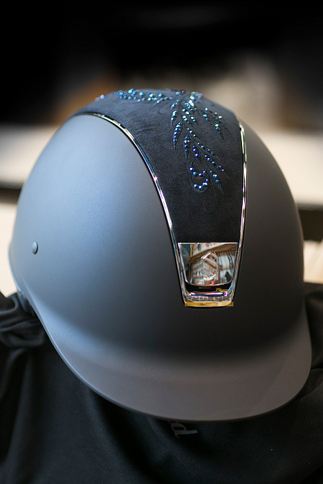 Помимо безопасности, шлем обладает отличной воздухопропускной способностью, имеет несколько отверстий спереди, спрятанных в под логотипом и в серебристом шве и отверстия для выхода воздуха сзади шлема. Шлемы выпускаются в различных дизайнах как классические, так и с элементами декора из натуральной кожи, кристаллической обсыпкой, а так же инкрустацией из страз на центральном элементе шлема. Вы можете заказать в нашем магазине шлем в индивидуальном дизайне (срок производства и доставки от 2 месяцев)