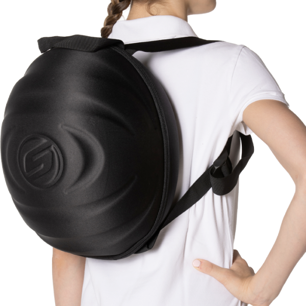Вместительная сумка-кейс округлой формы с твердыми стенками и удобными ручками защитит ваш шлем при транспортировке как в домашней конюшне, так и при выездах на соревнования. Можно носить как рюкзак или в руке.