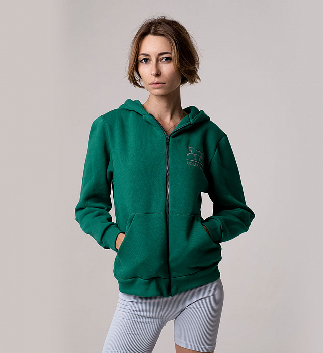 Хлопковая кофта на молнии с капюшоном имеет внутри начес, согреет вас в самые морозные дни.