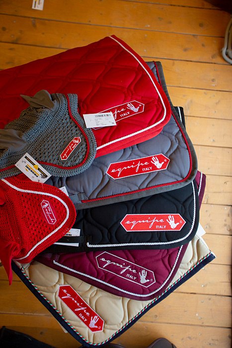 Мягкий и гибкий вальтрап из однотонной ткани с логотипом Equipe в углу и цветным жгутом. Прекрасно сочетается с амортизаторaми-подушками из-за своей лаконичности.