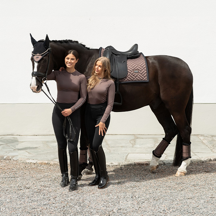 Ушки с хлопковой основой и вставкой из атласного материала в цвет вальтрапов Equestrian Stockholm. В центре металлический логотип бренда. Стирка при 30 градусах в сетчатом мешке для деликатной стирки...